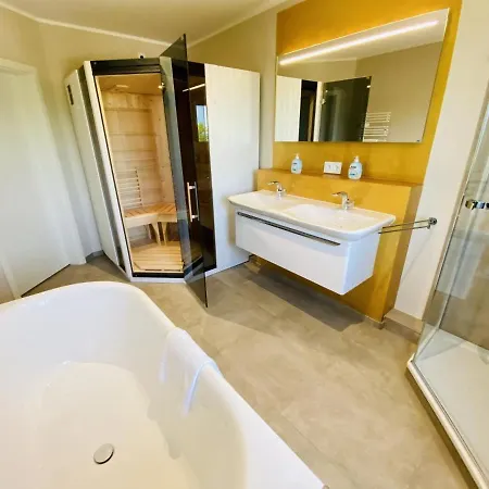 Die 83 m^2 große Ferienwohnung Haus Drei Schwestern, Ostseefeeling, am Strand liegt in einer 14 Gehminuten Entfernung vom Strand Strand Warnemuende und lockt mit einer Sauna. Die Internationale Gartenbauausstellung 2003 ist auch circa 4 Kilometer von dem 1-Zimmer-Apartment entfernt gelegen.